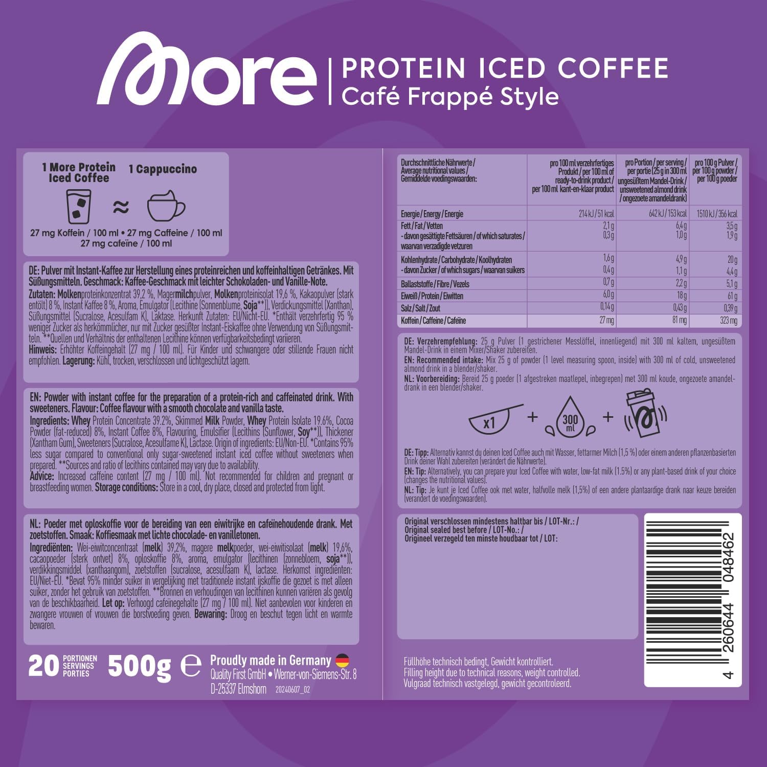 MORE Protein Iced Coffee – Café Frappé Style | High Protein Low Sugar Coffee Drink | Made in Germany 300g