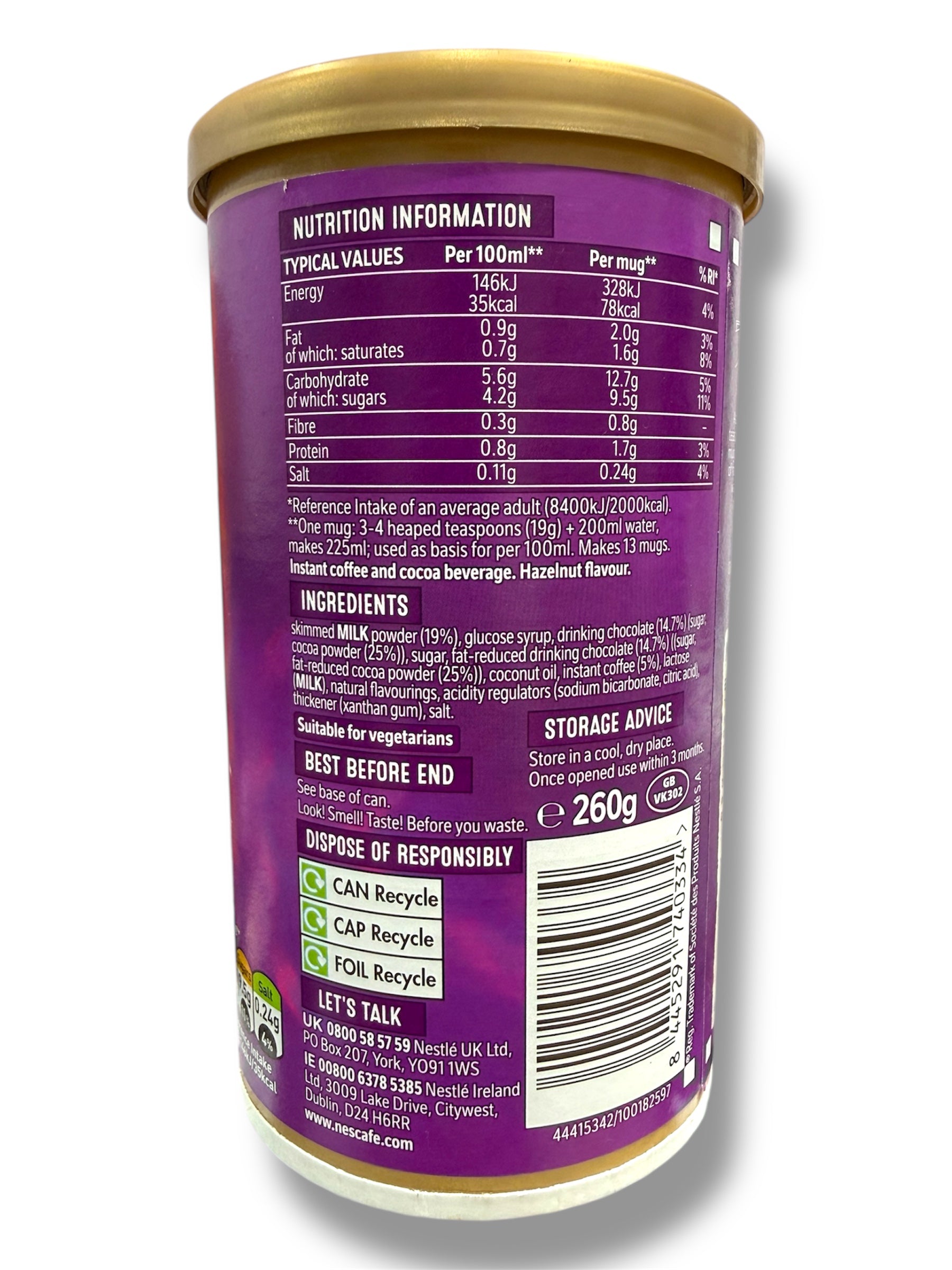- Recyclable 260 g can – makes ~13 creamy mugs.
