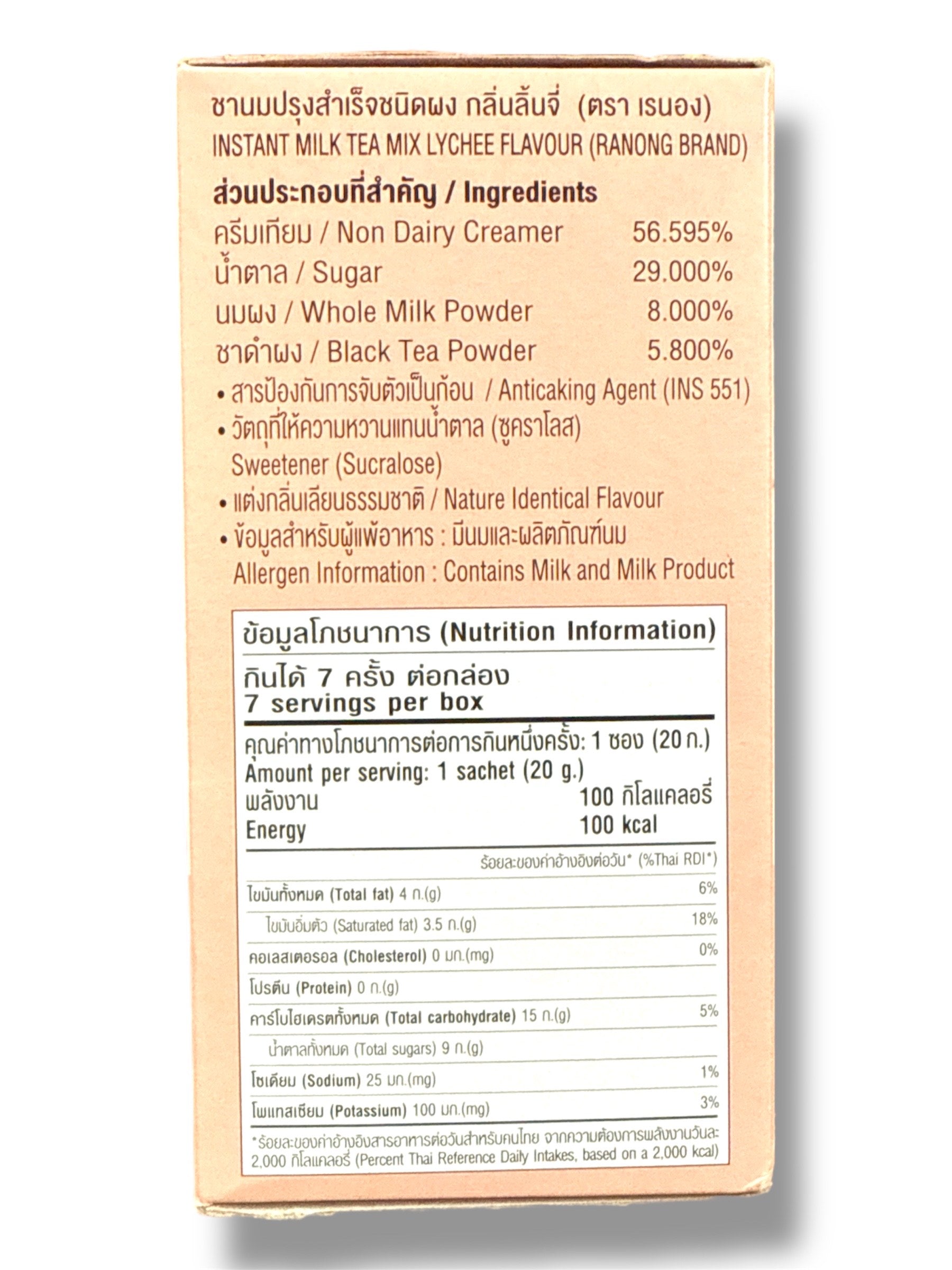 Ranong Instant Milk Tea Lychee Flavour – 7 Sachets × 20g